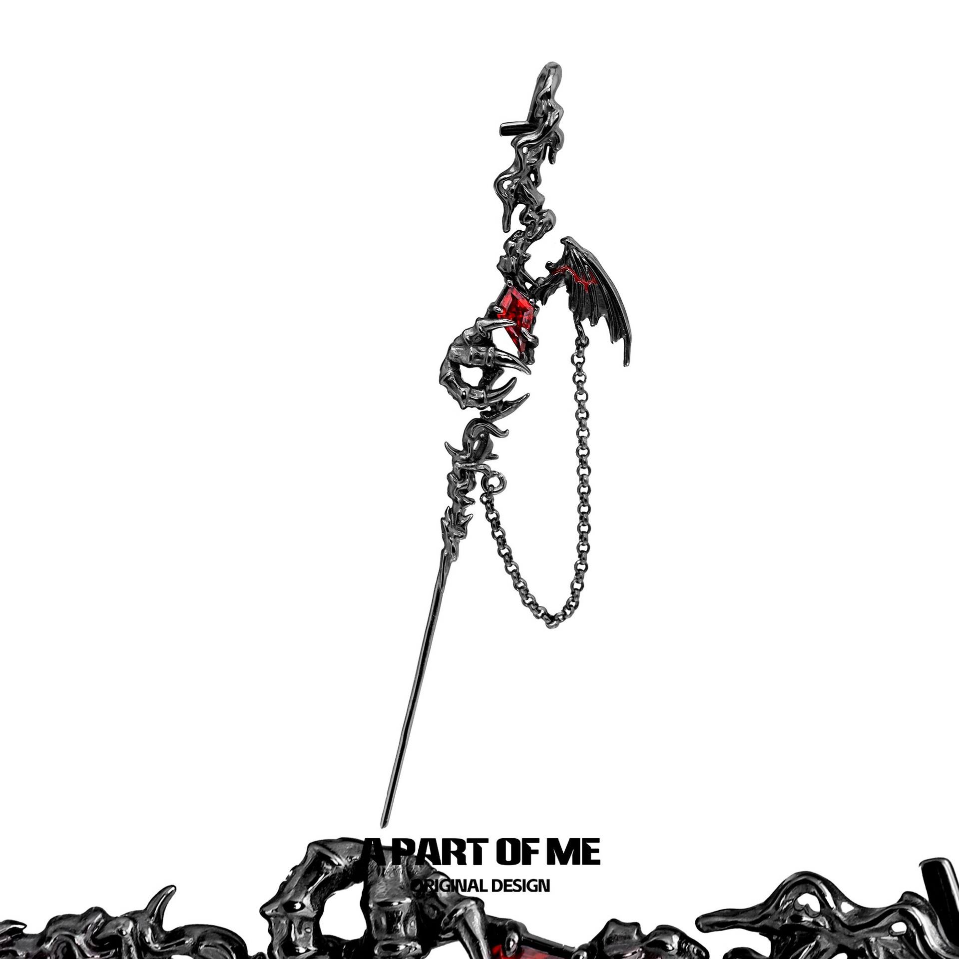 ダークナイトドラゴンボーンイヤリングニッチデザインピアスイヤリングハイエンドダークドラゴンウィングスイートクールイヤリングホットガールイヤリング