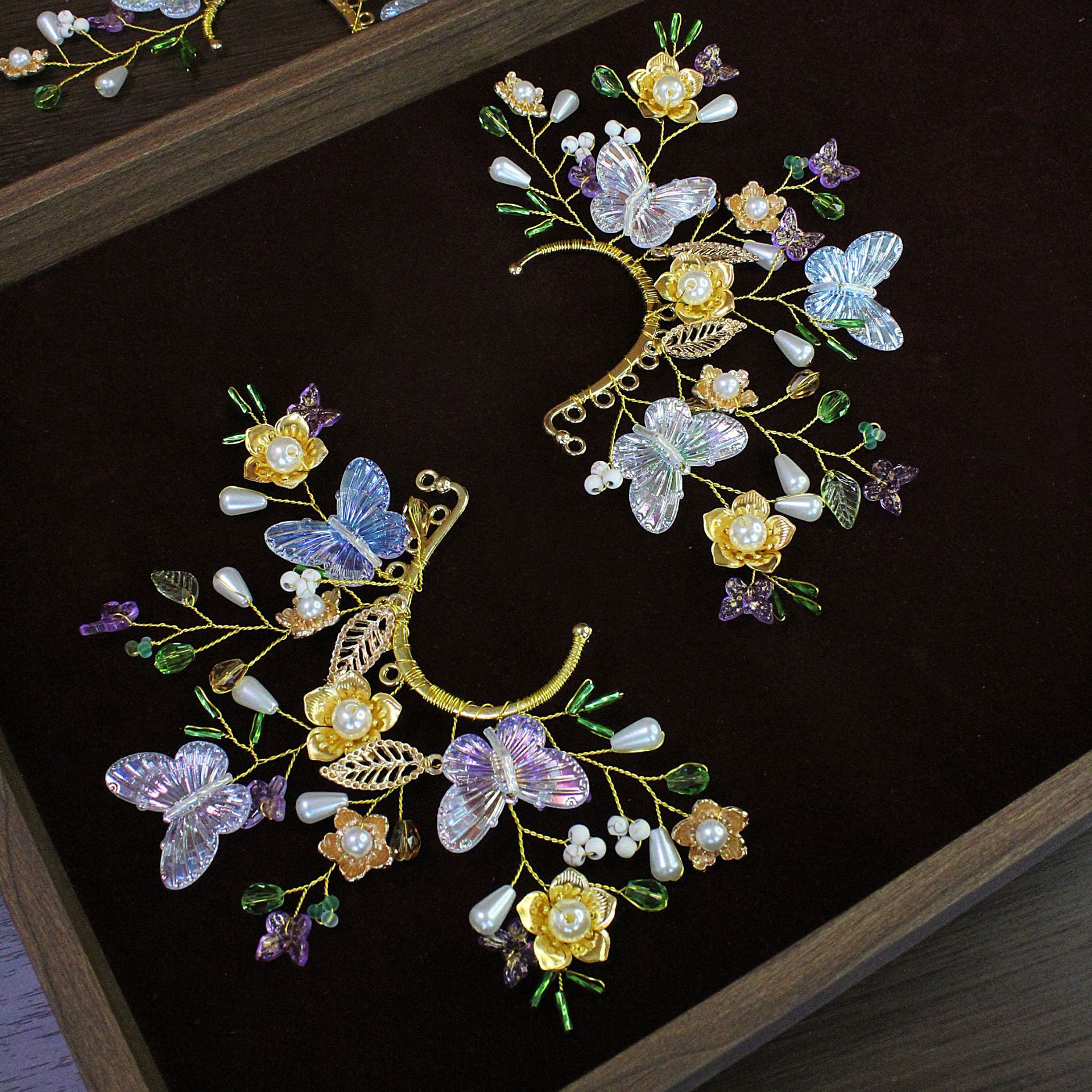 オリジナルデザイン新中国風手作り耳飾り国風漢服異域風イヤリング無耳洞真珠蝶耳掛け