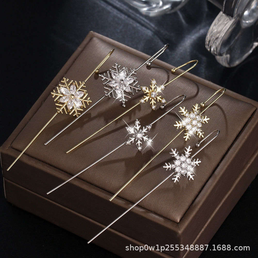 日韓の冬の新型の冷たい風の雪の花のジルコンの耳はクリスマスの個性の耳の針の女性の耳の骨を掛けて卸売りを挟みます。