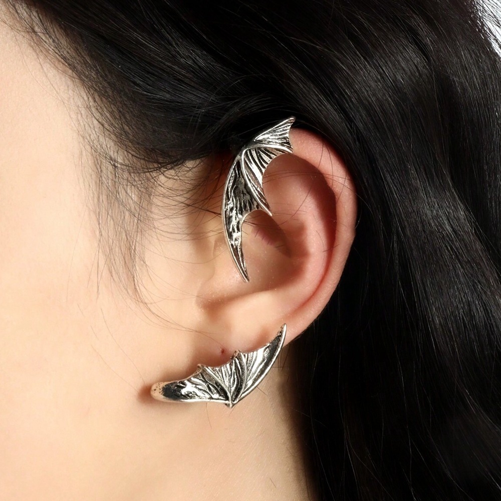 国境を越えた新型ハロウィーン耳飾り欧米パンク復古悪魔コウモリ耳のない耳掛け袖口イヤリング女