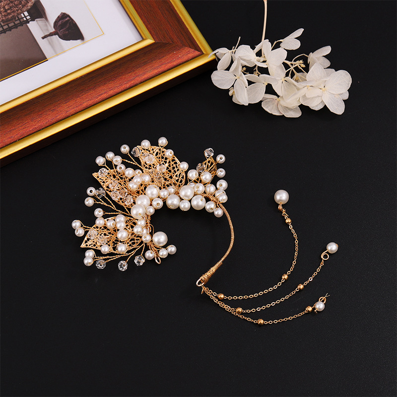個性は誇張して欧米風の耳掛けの手編みのCCBの玉の耳飾りの復古のウェディングドレスの写真を掛けて耳の骨の挟みを撮影します。