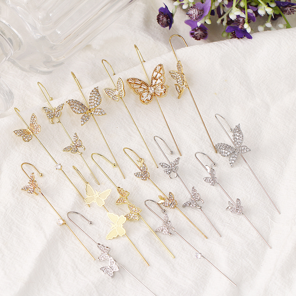 クロスボーダーの人気商品の透かし彫りのジルコンの蝶の耳掛けの耳掛けの耳掛けの耳掛けのアンドロメダの一体式の気質の耳の穴のイヤリングの卸売りがありません。