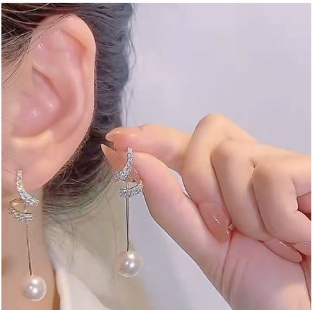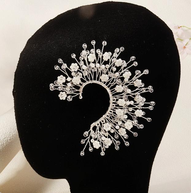 キラキラ銀色のピアスと耳掛けが一体になっています。贅沢で高級感があります。