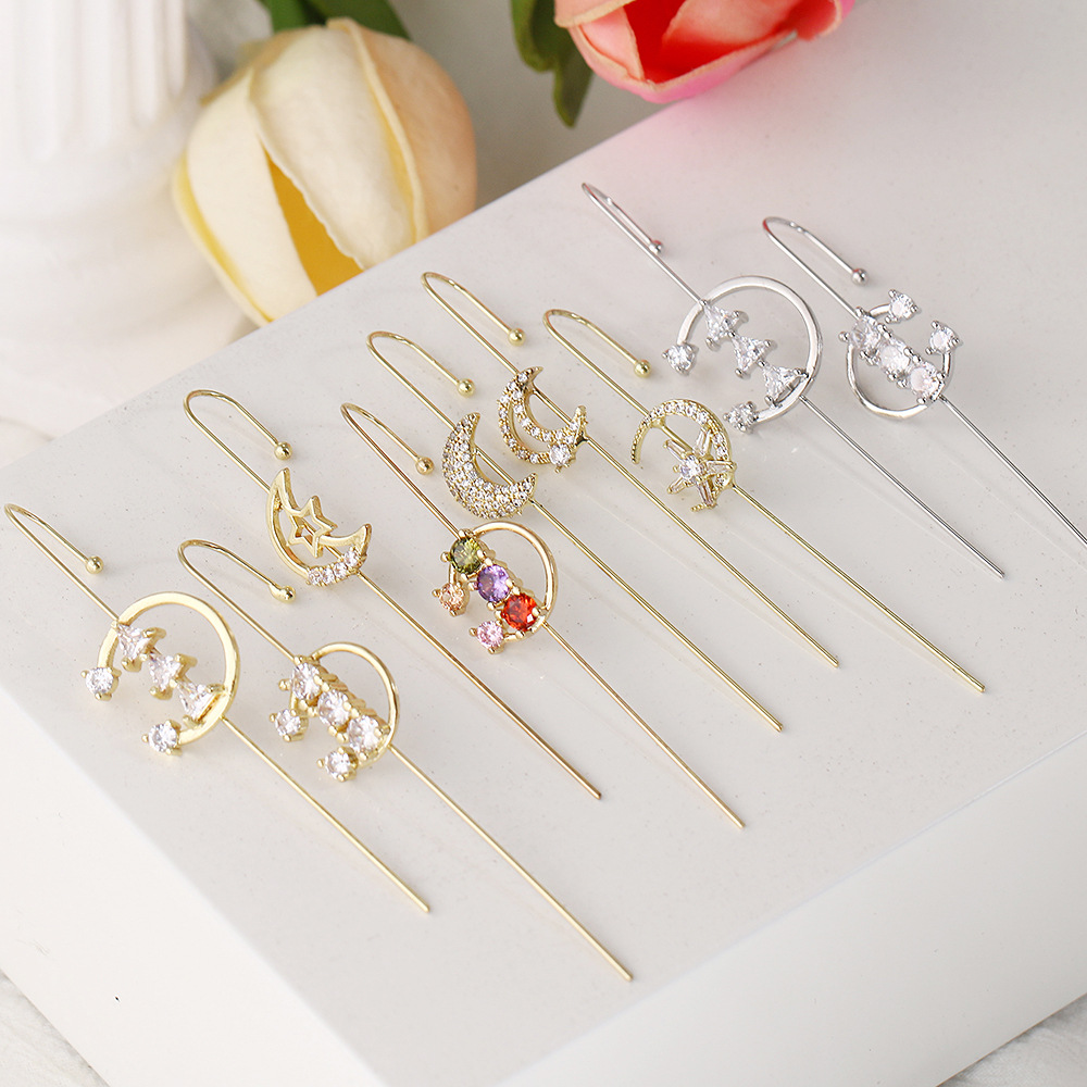 小衆設計非対称無耳洞耳飾り韓国百合気質軽豪華ジルコン金属骨クリップシンプル耳クリップ