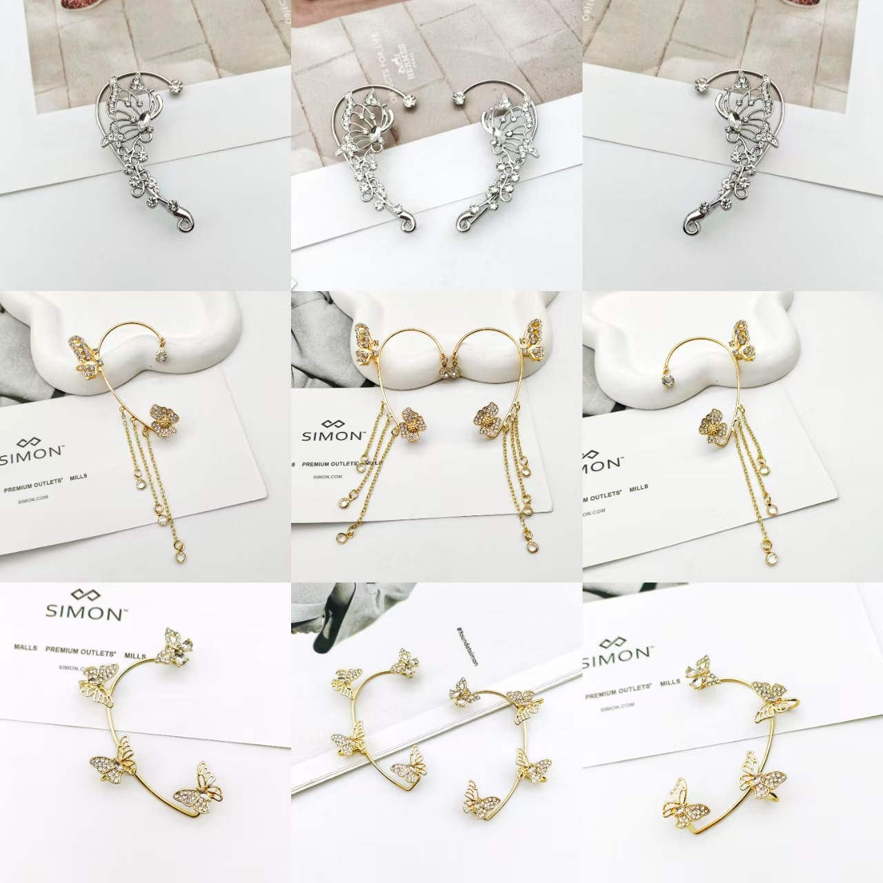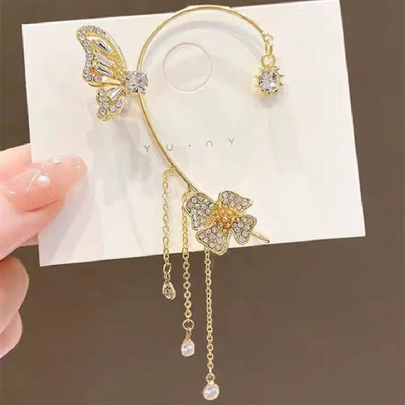 クロスボーダー高級感超フラッシュ気質蝶花耳掛け女流蘇耳穴なしイヤリング爆金耳骨クリップ卸売り