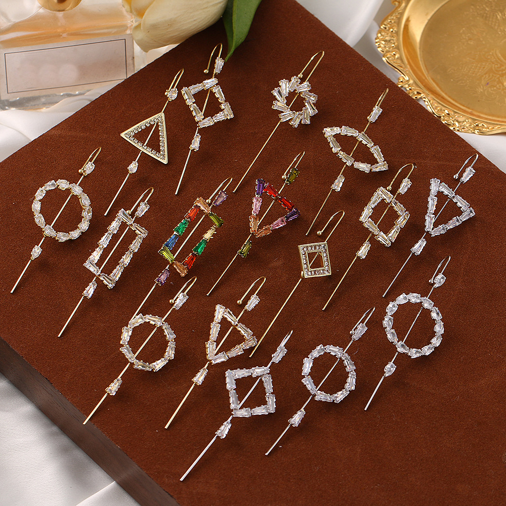 クロスボーダーの幾何学的な耳掛けの針の銅はジルコンを入れて本物の金の個性をめっきします。