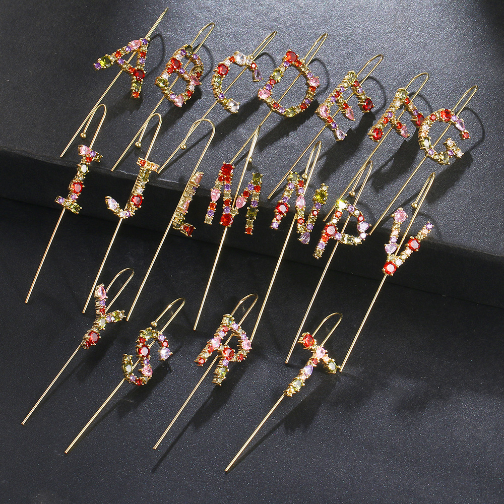 日韓超仙気質冷淡風アルファベットジルコン耳掛け女性耳骨クリップ斜線耳飾り個性アクセサリー卸売り