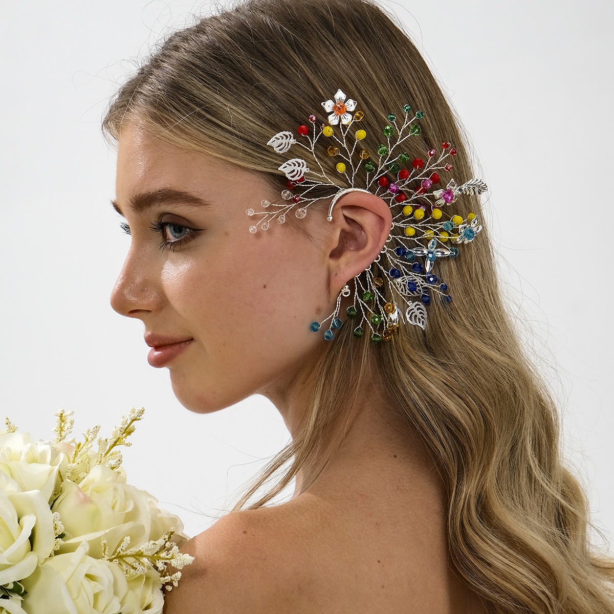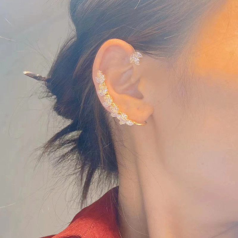 ドーパミンカラー水晶花耳骨クリップ欧米風誇張写真アクセサリー森系精霊耳掛け耳飾り