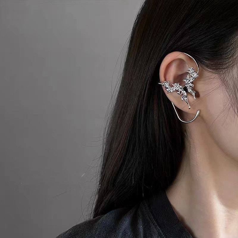 蝶恋花蝶耳骨クリップ一体式イヤリング小衆デザイン感シンプルな気質流蘇百合個性耳飾り