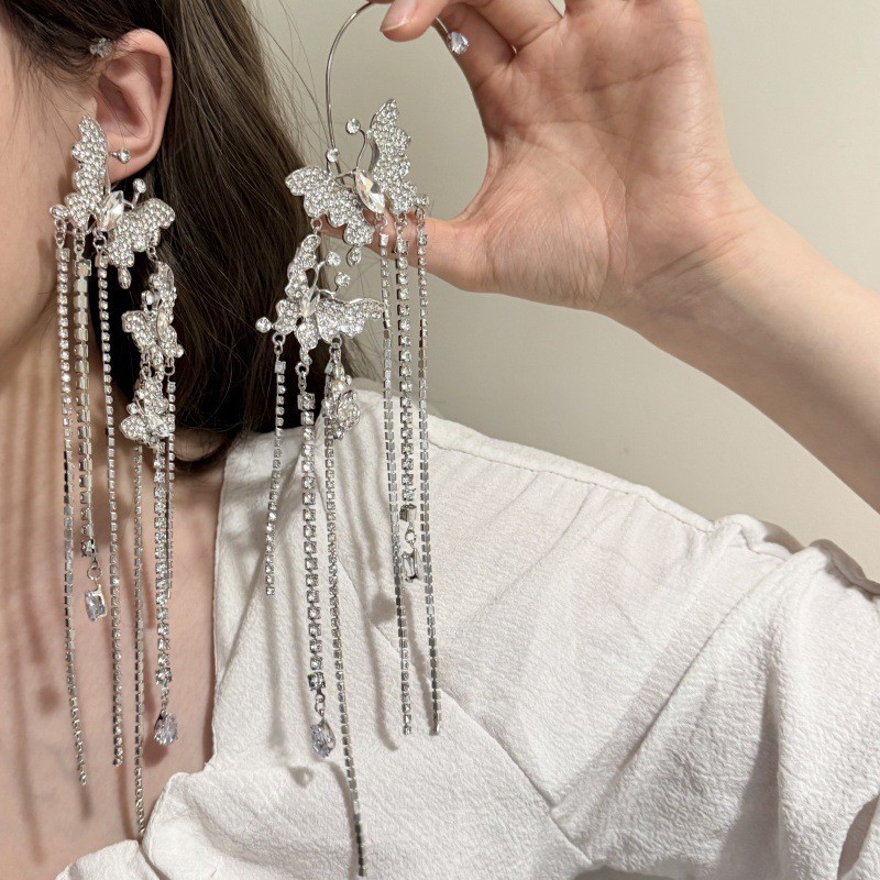 超閃水ドリル蝶流蘇長型無耳洞耳掛け女性ファッション優雅気質高級感耳飾り