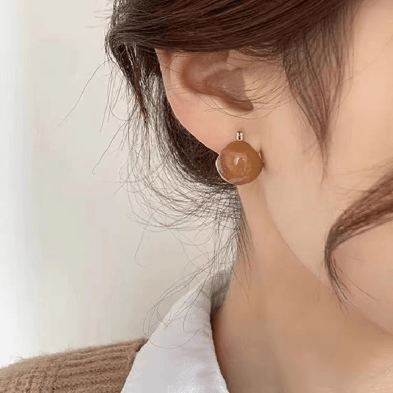 レトロなカレー色の丸い気質の高級イヤリングの女性秋冬のフランスの耳のボタンの高級感の2024年の新型の潮の耳飾り