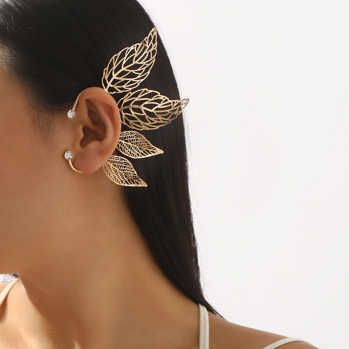 国境を越えたレトロなデザイン感耳骨クリップ対外貿易人気水晶木の葉写真耳飾り演出