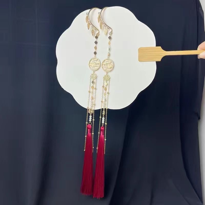 羽耳掛け帝慕卿手作長型超仙羽流蘇中国風通用耳掛け