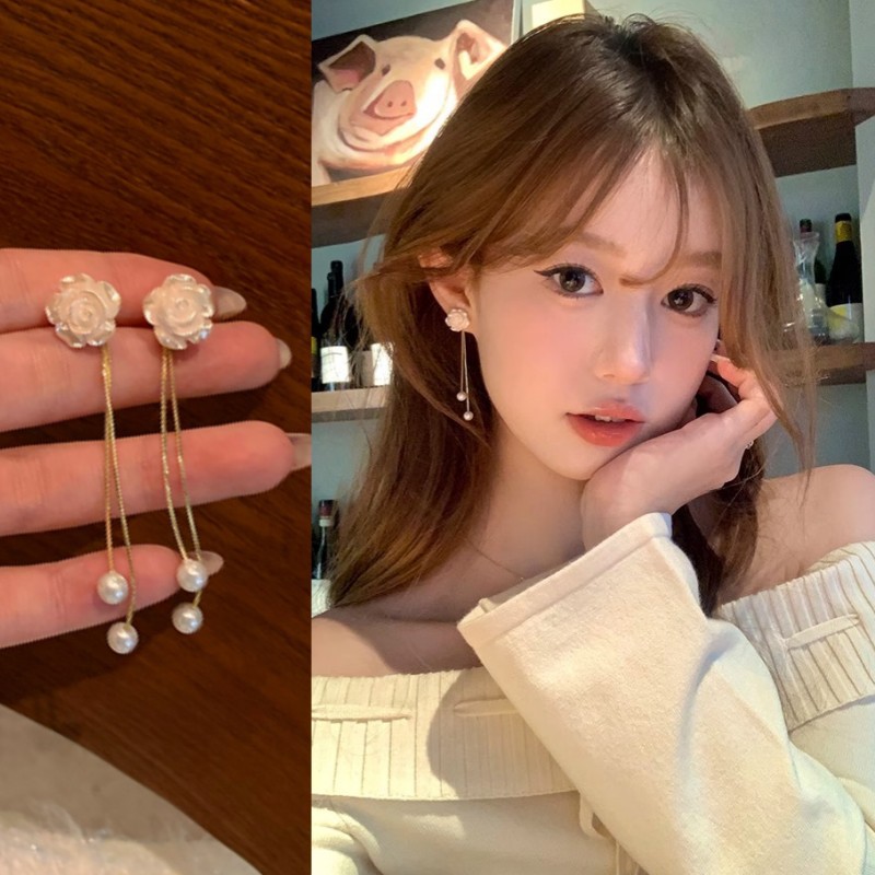 気質欧尼山茶花流蘇イヤリング2024新型起爆フランス真珠イヤリング高級感花耳飾り