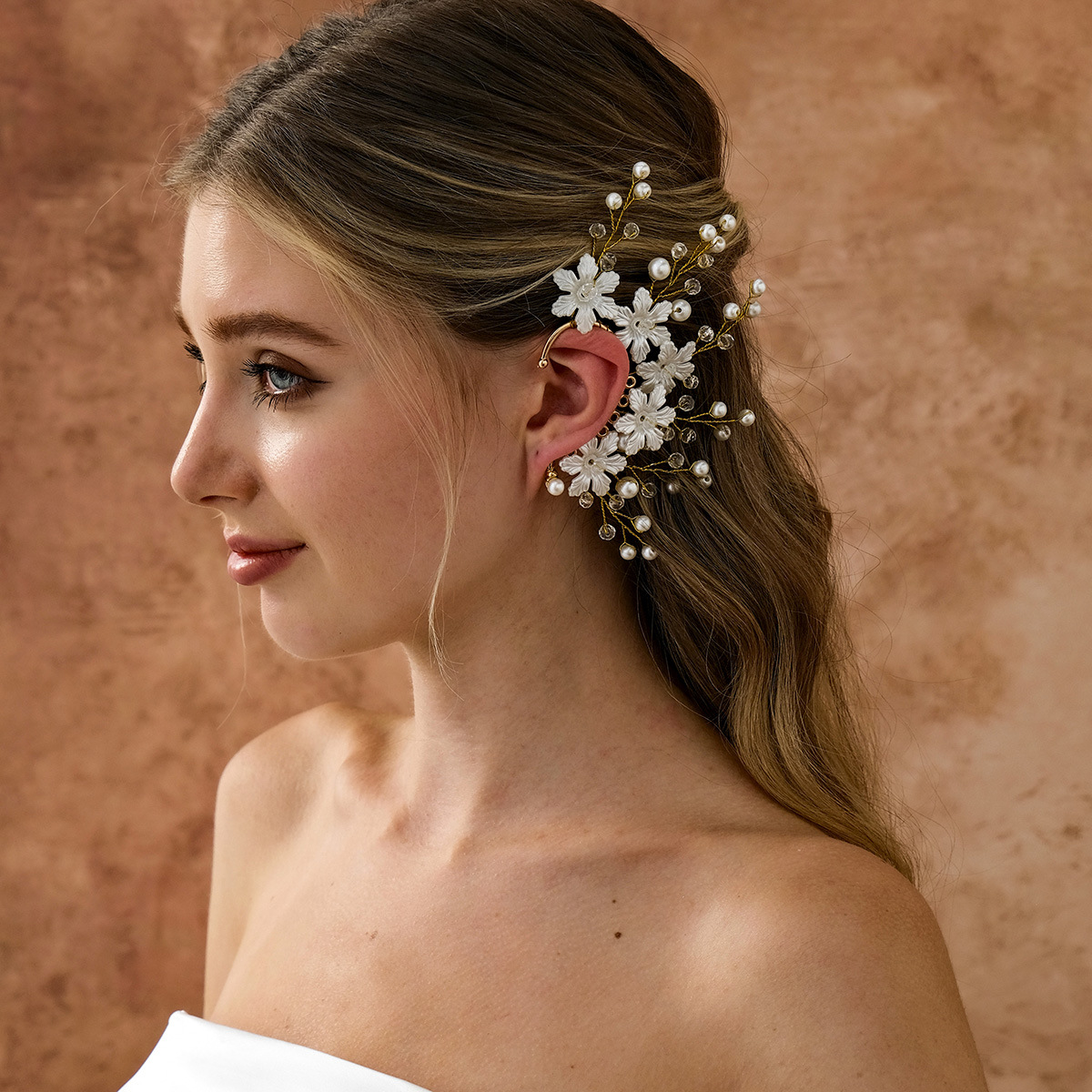 欧米のデザイン感森系の花の耳の骨は手作りの真珠のドリルの精霊の耳飾りの大気の新婦のアクセサリの耳掛けを挟みます。