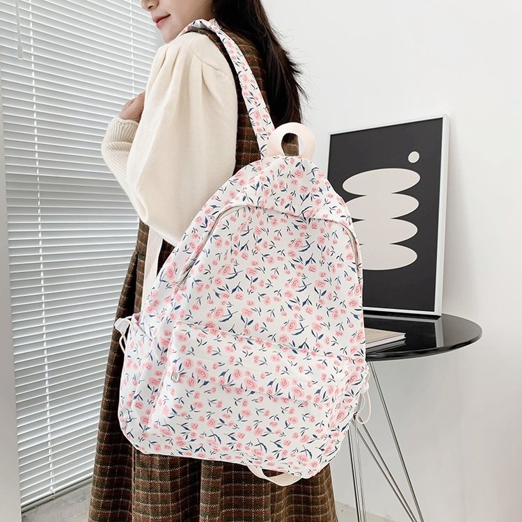 テクスチャスタイルのチューリップパターン、新鮮でシンプルなキャンパススクールバッグ、カジュアルバックパック、カジュアルファッション、軽量