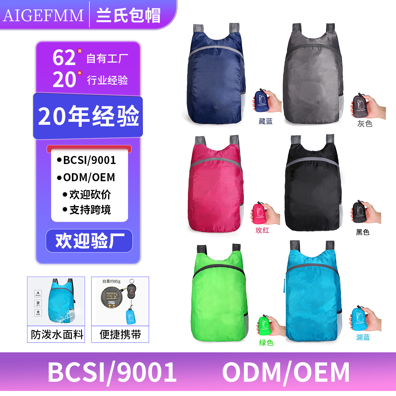 クロスボーダーオックスフォード布リュックサック衝突色アウトドア登山用リュックサック軽量多機能カジュアル折りたたみリュックサック