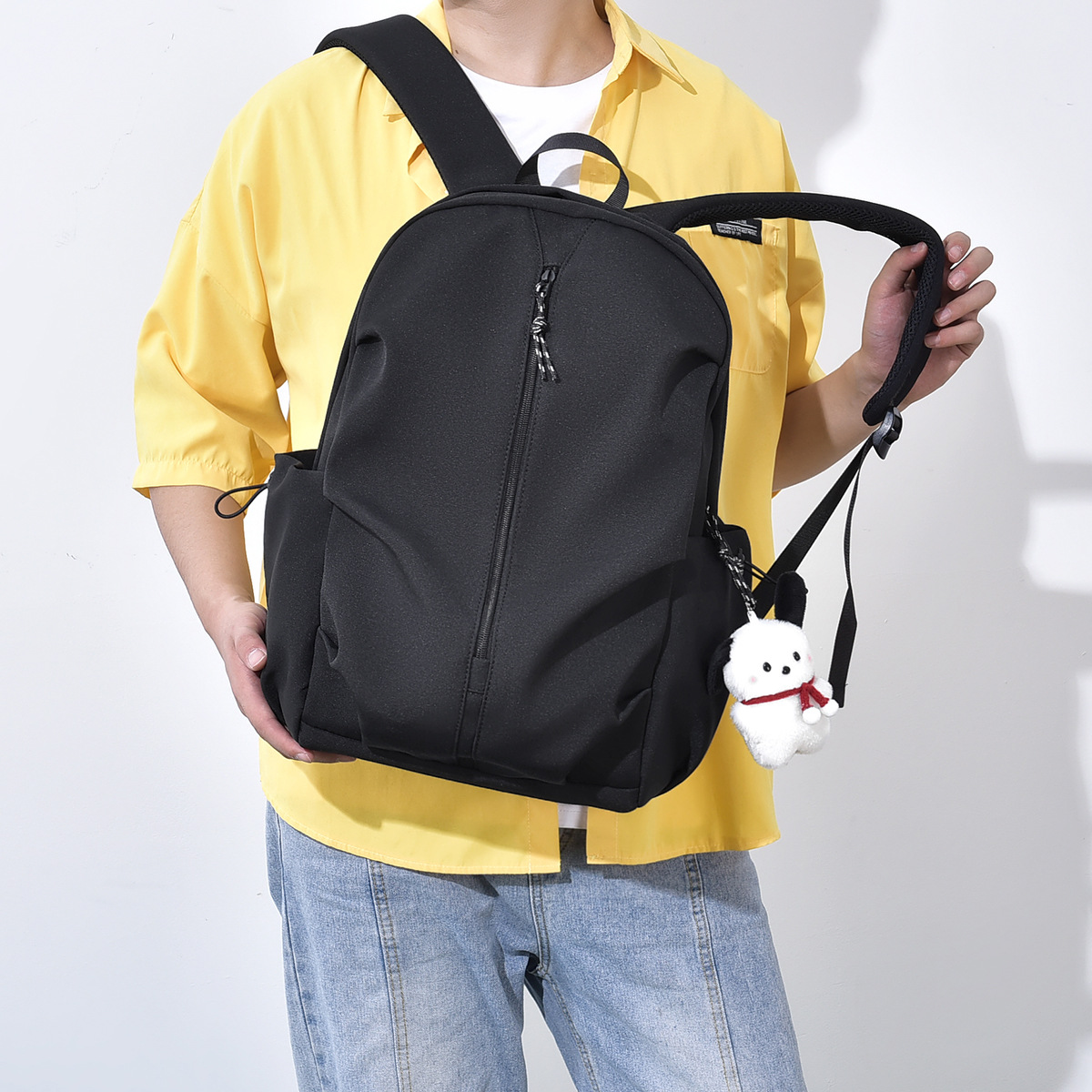 軽やかでシンプルな色のリュックサックにぶつかります。