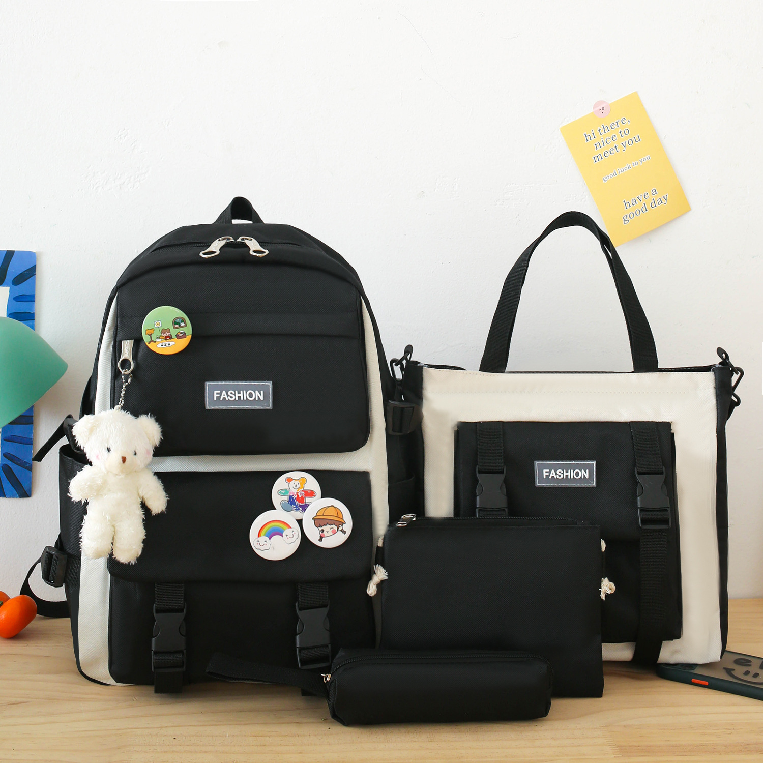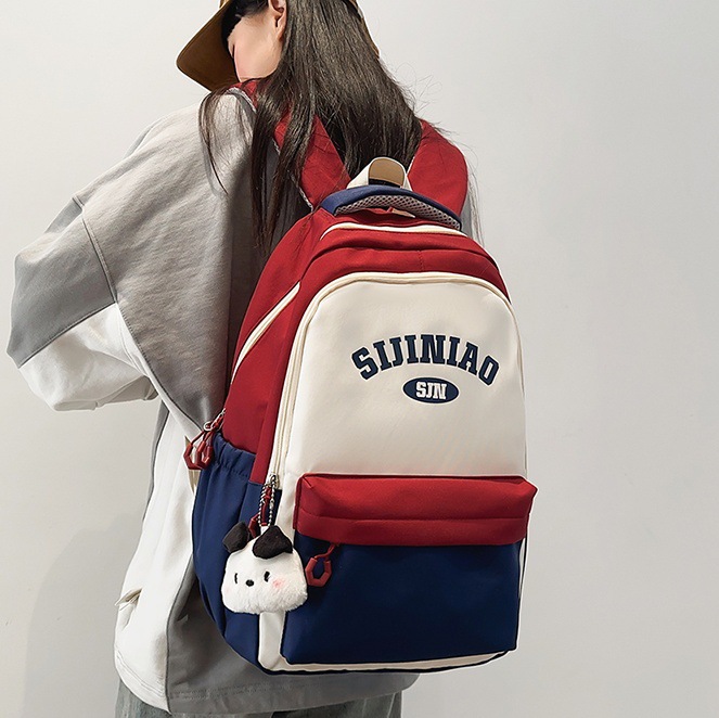 中学生・高校生・大学生の塾バッグ 韓国版原宿リュック 女子I NSキャンパス カラーブロック4点セットリュック