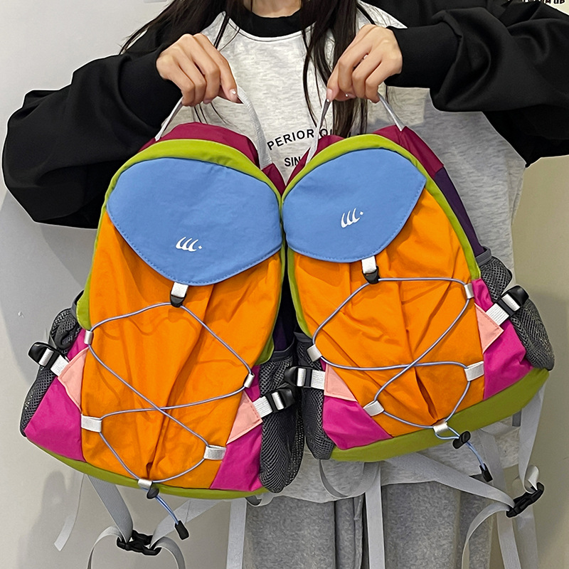 レトロなアウトドアハイキング登山バッグ女性の軽量コントラストカラーバックパック男子大学生スクールバッグスポーツサイクリングバッグ