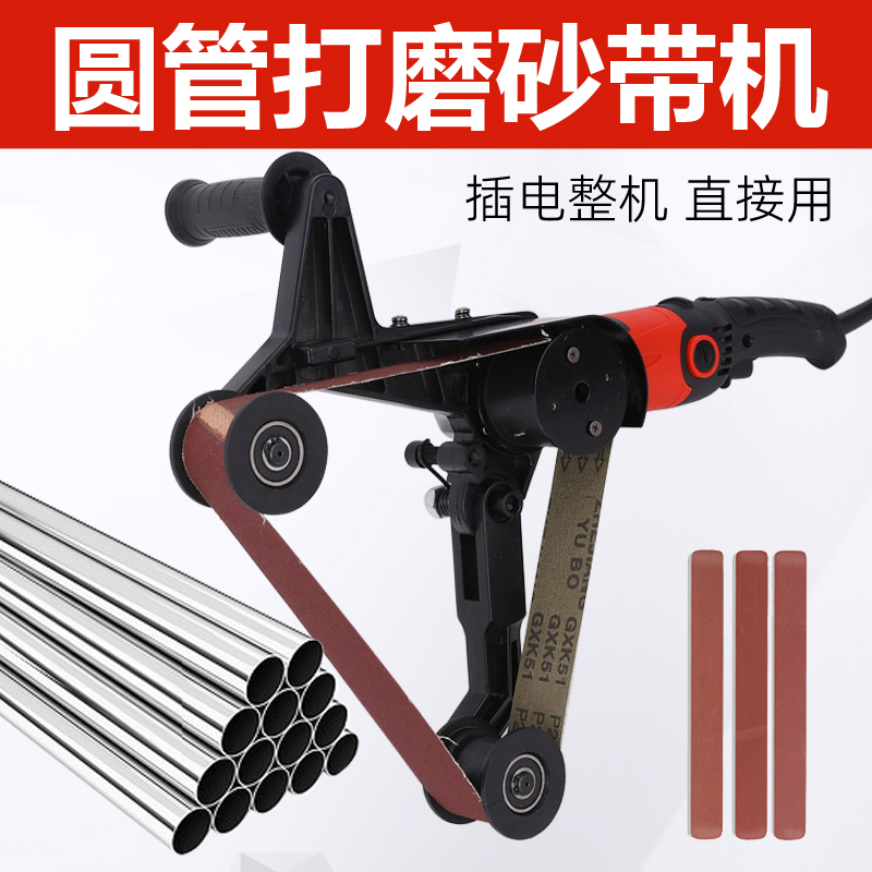 ステンレス鋼丸管研磨機電動ハンドヘルドブラシ機小型外周管ベルトマシン金属錆除去ツール