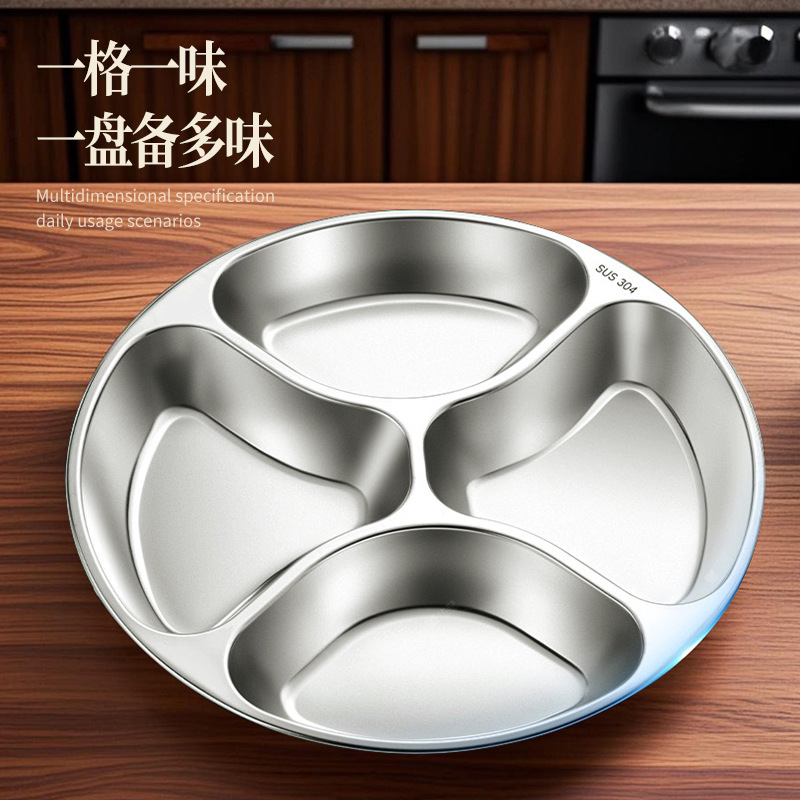 304ステンレス食事皿分格学生食品級昼食三格円盤減脂食事皿家庭用定量皿