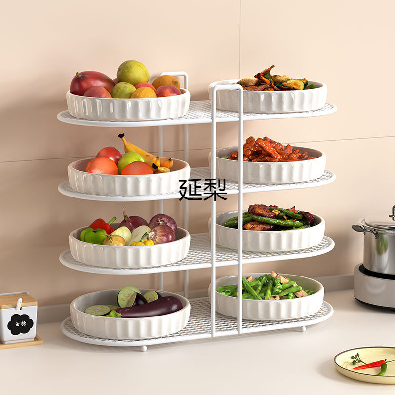 Yanli キッチンおかず収納ラック、調理準備用の調理用食器収納品、調理用プレート、多機能カウンタートップ、多層シンプル Yanli