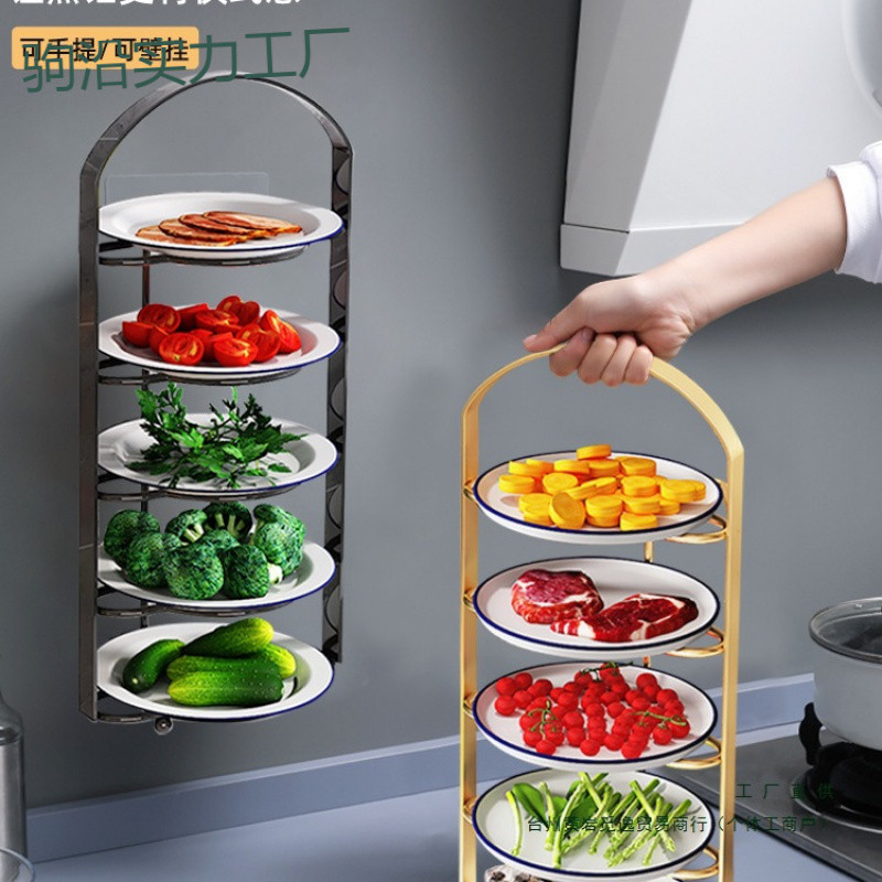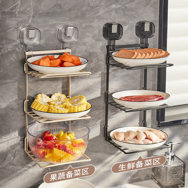 吸盤アイアンキッチンプレーステーブル収納ラック多層おかずは壁掛け可能、積み重ね可能、家庭用調理鍋と食器用
