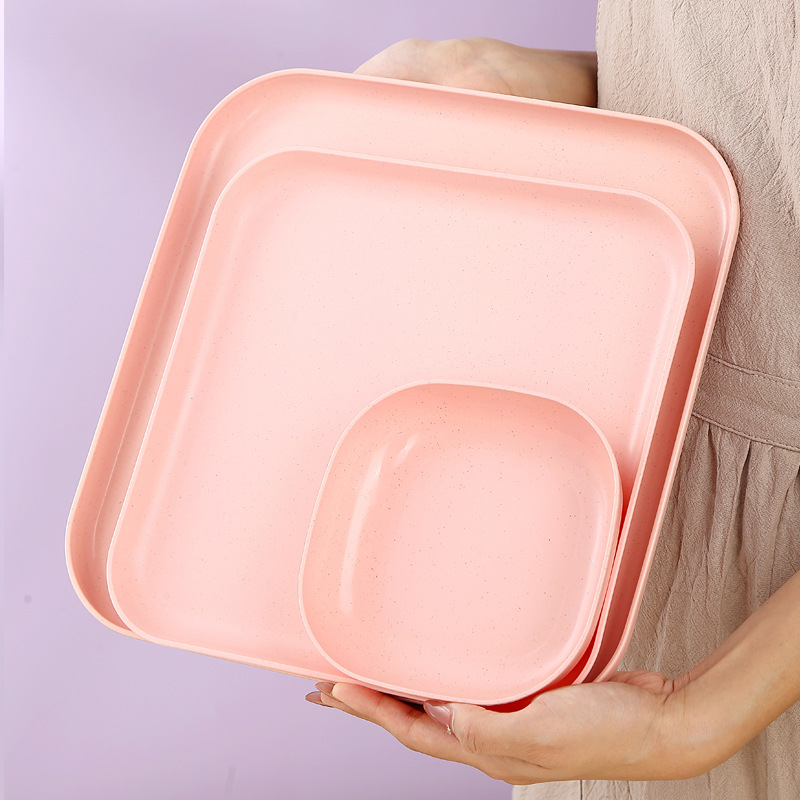 小麦わらマルチサイズおかずプレート、大きな正方形プレート、骨吐き皿、家庭用スナックプレート、ディナープレート、フルーツプレート
