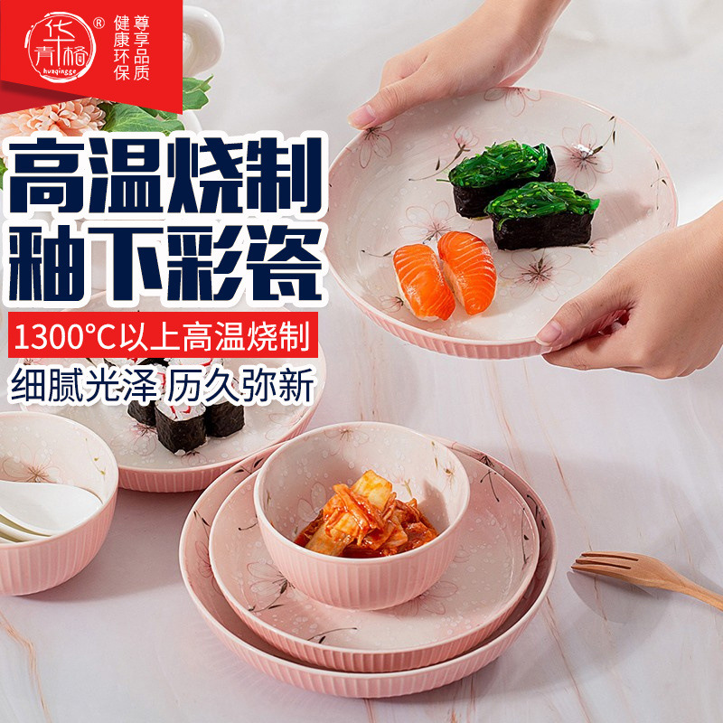 日本の桜ボウルインターネット有名人プレート食器家庭用食事クリエイティブ組み合わせ朝食プレートセラミックラウンド深皿