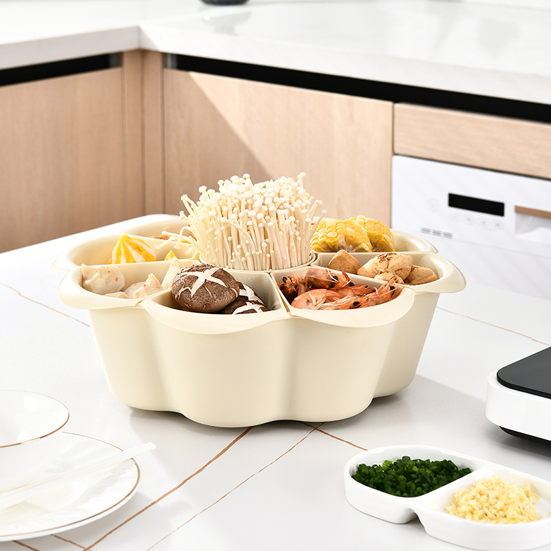 鍋のおかずトレイ、家庭用野菜バスケット、回転式水切りバスケット、キッチンコンパートメント大皿、鍋専用準備バスケット