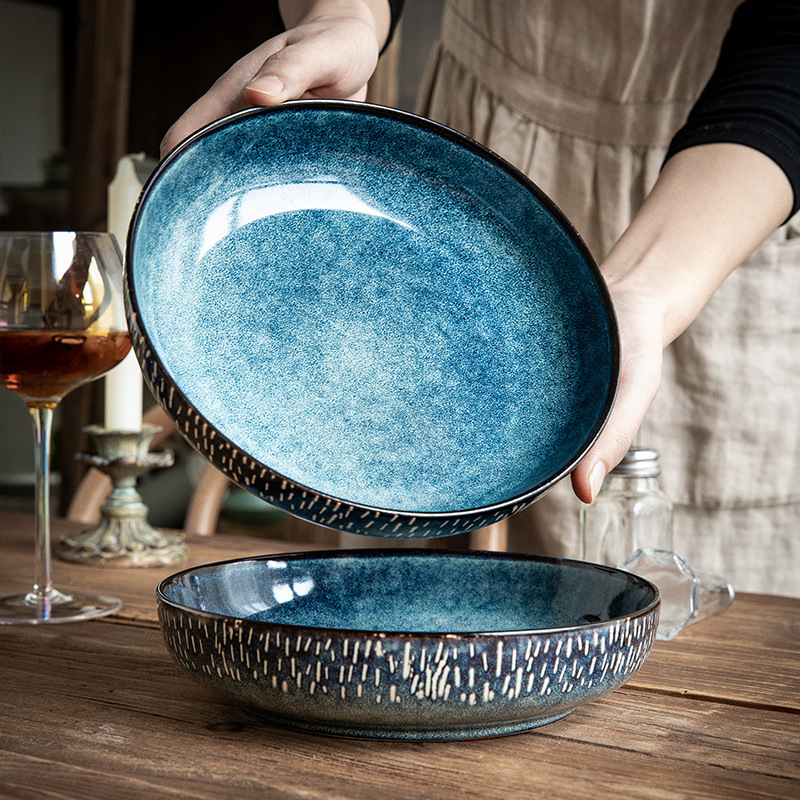 食器 プレート 家庭用ネット有名人プレート 縦模様 和風深スーププレート 陶器皿 調理皿