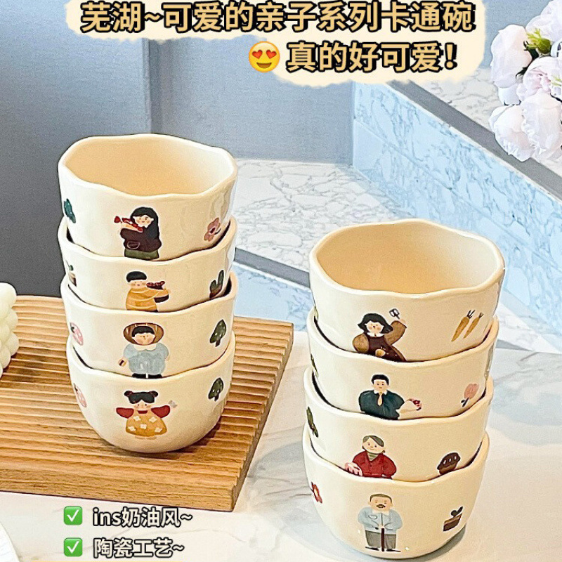 プレート 家庭用皿 子供用ディナープレート 陶器皿 8inch 丸深皿 かわいい親子食器