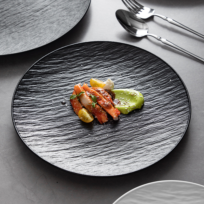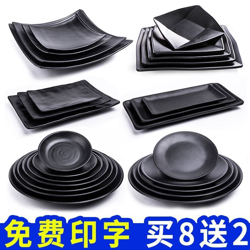 メラミンプレート食器プラスチックバーベキュー磁器黒クリエイティブプレートレストランディッシュプレート鍋レストランディナープレート商業プレート