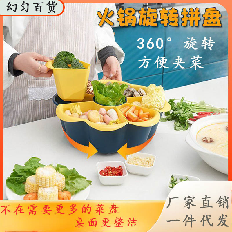 軽くて豪華でシンプルな回転鍋の盛り合わせ家庭用二重野菜の果物は特別に野菜を洗って料理を用意して回転皿を収納します。