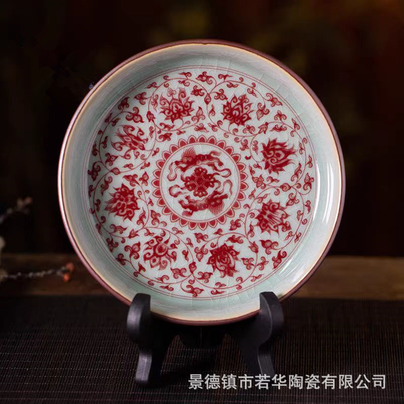 景徳鎮青花柚里紅龍紋壺承高級乾泡台茶托果盤シングル家庭用陶磁器茶器