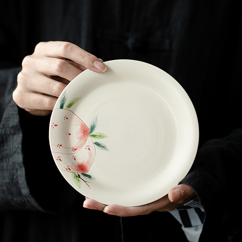手描き寿桃壺承高級陶磁器養壺茶承茶トレーカンフー茶器蓋碗托乾泡皿断熱マット
