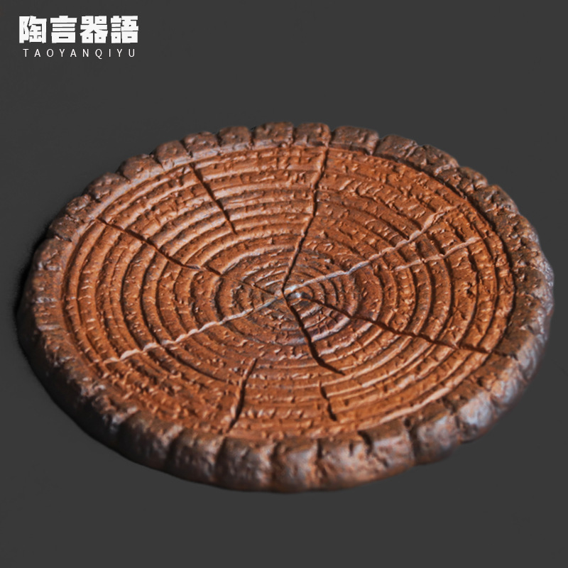 レトロ粗陶老岩泥円形杭壺クッション中国式禅意カンフー茶道単層小サイズ壺承トレー