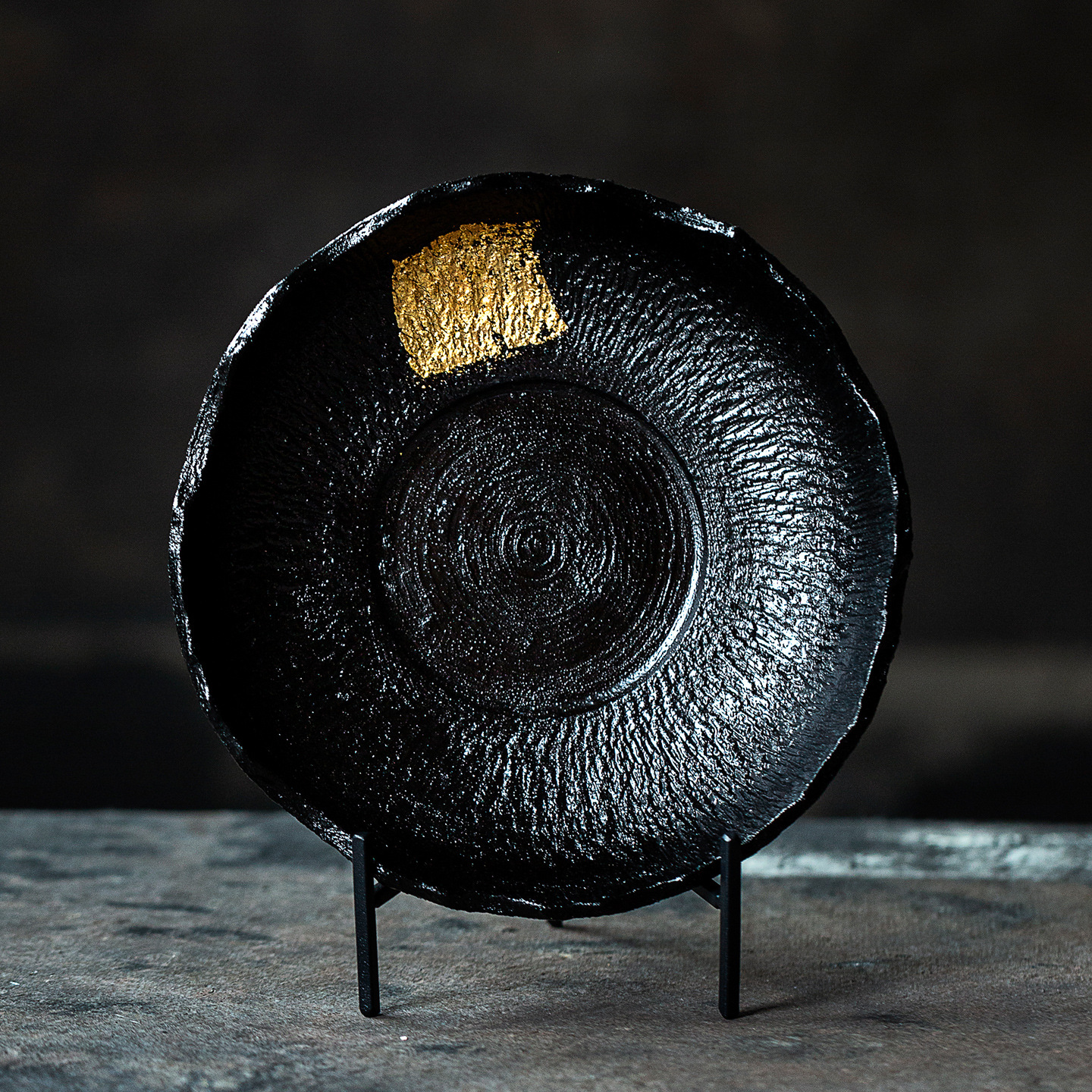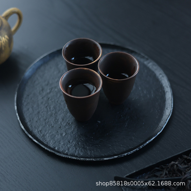 円形黒色レトロ鍛造鉄瓶承家庭用乾燥泡皿茶トレー金属果物皿工夫茶器