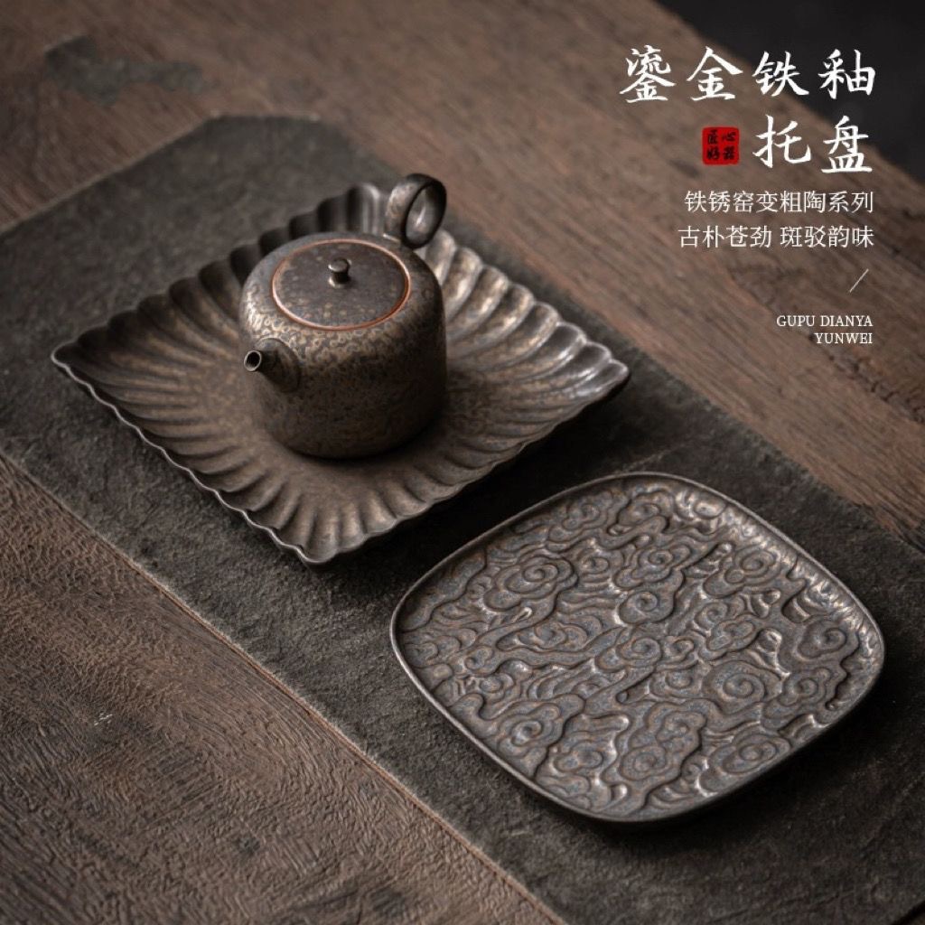 カンフー茶器乾泡台箱鉢泥小茶台日本式家庭用レトロ粗陶吸水茶盤粗暴茶托