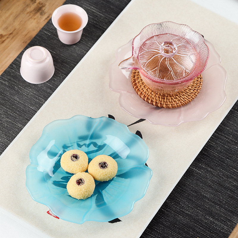 中国風ガラスレース蓮の葉ティーカップマット、断熱ティーソーサー、ポットホルダー、カンフーティーセット、新しい中国風ガラスティーソーサー