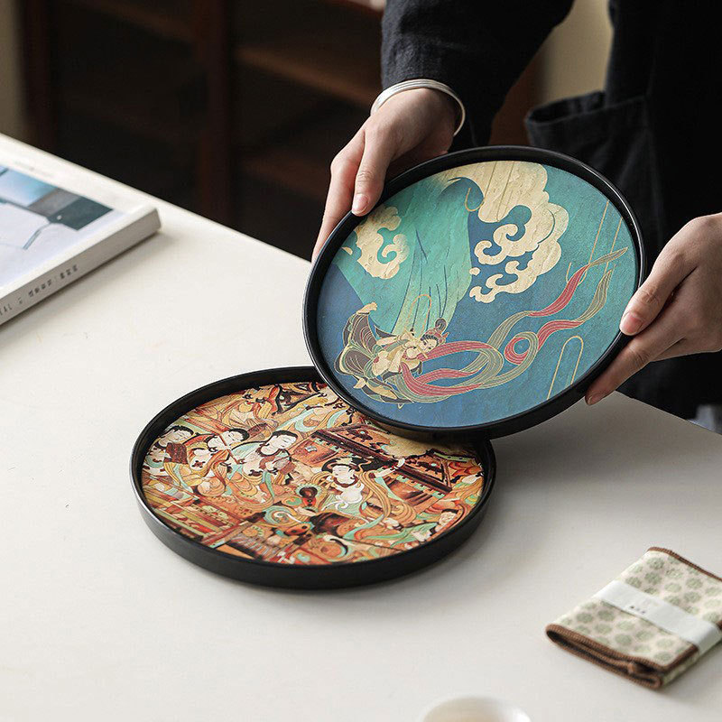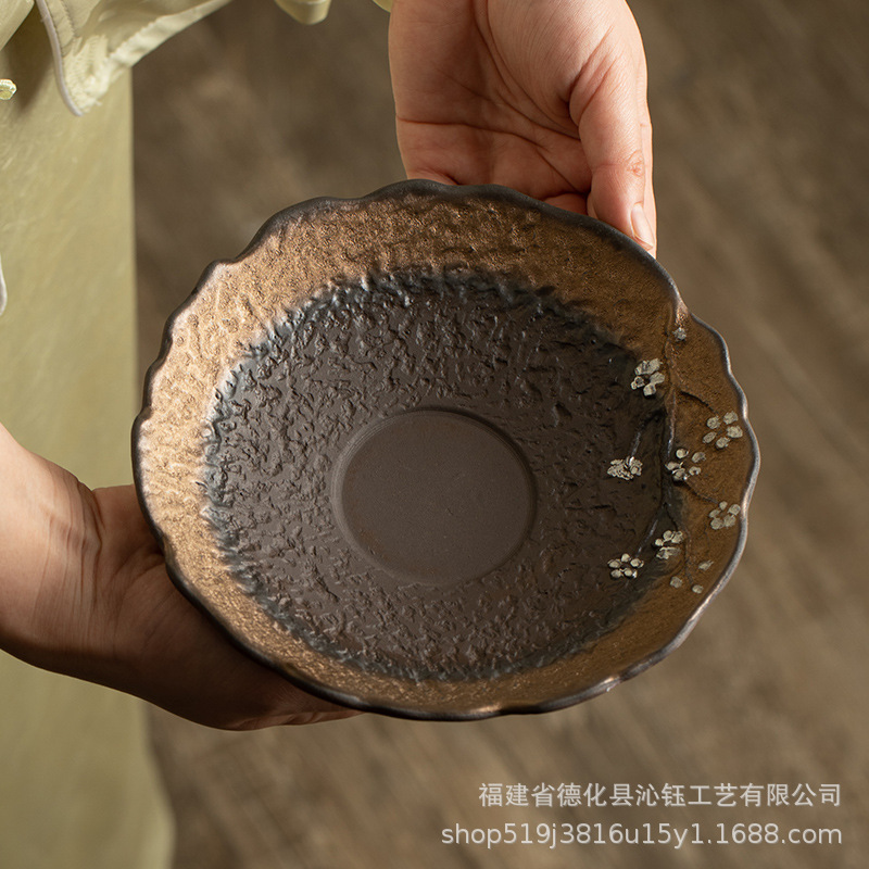 敦煌文創石窟壺承寂手作粗陶乾泡台茶道部品養壺托乾貨物果物皿
