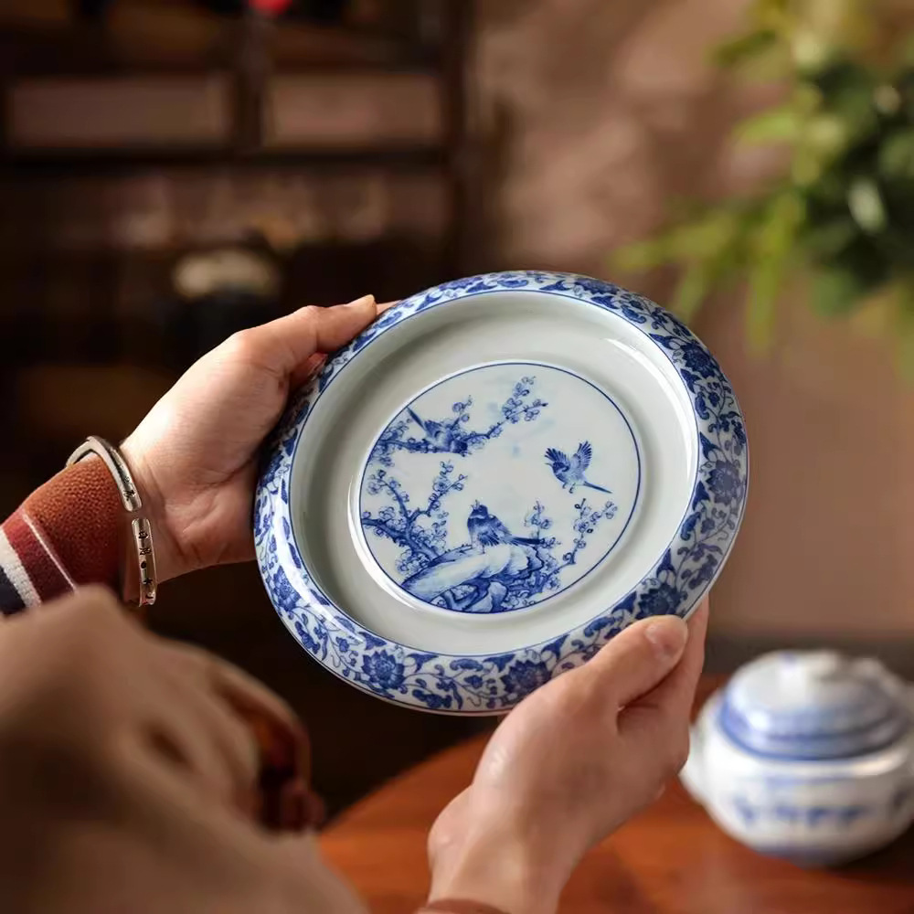 景徳鎮の青と花の鳥の壺は中国式の乾燥した泡台の家庭用の養壺を引き受けて陶磁器のティーポットの台座の壺を支えてお茶の皿を支えます。
