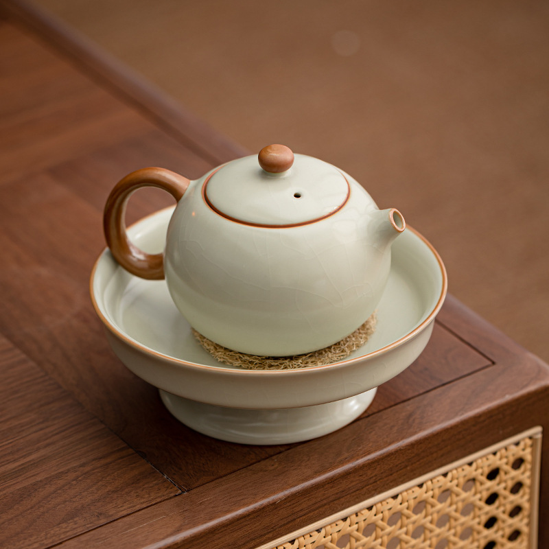 ベージュの汝窯ティーポット、乾燥用ティーポット、小型家庭用シャワーポット、水貯蔵蓋、ボウル、ティートレイ、ポットマット、ティーセットアクセサリー