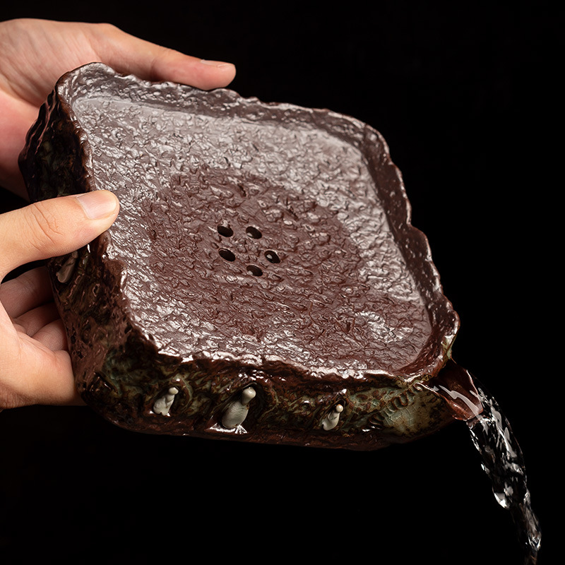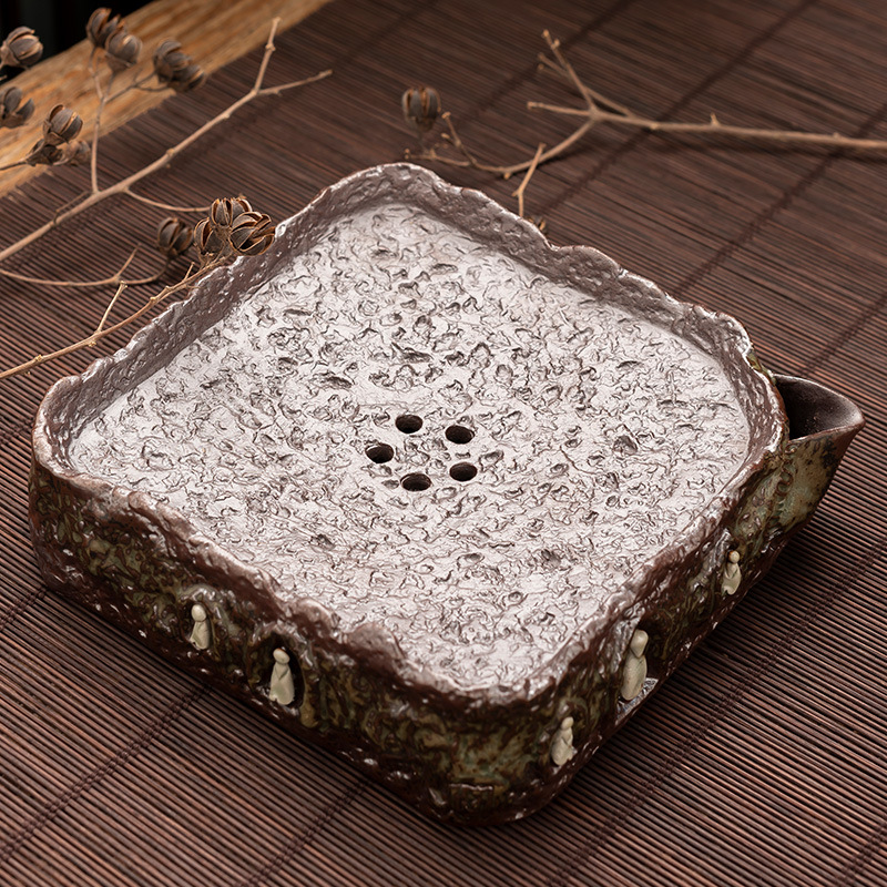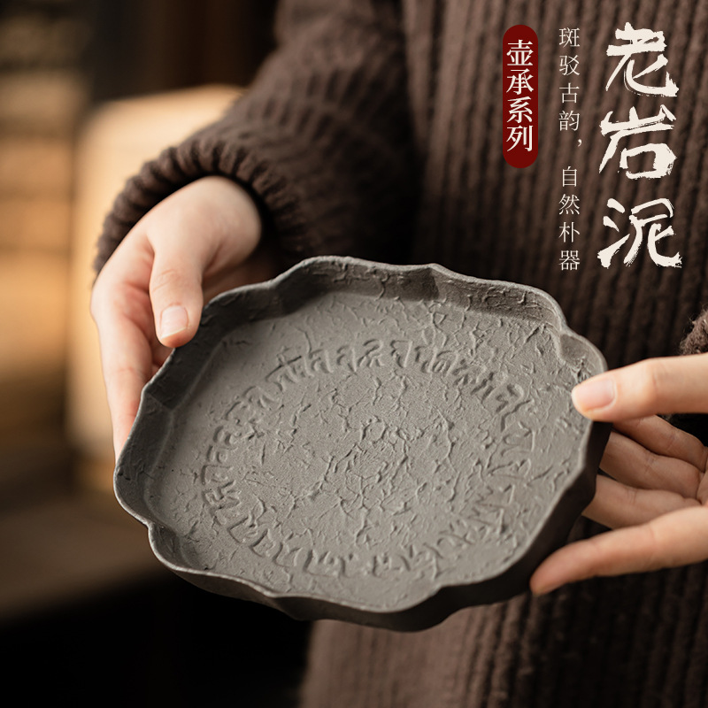 粗陶老岩泥壺承素日本式レトロ貯水シンプル乾泡茶盤小茶台カンフー茶道零配ロット