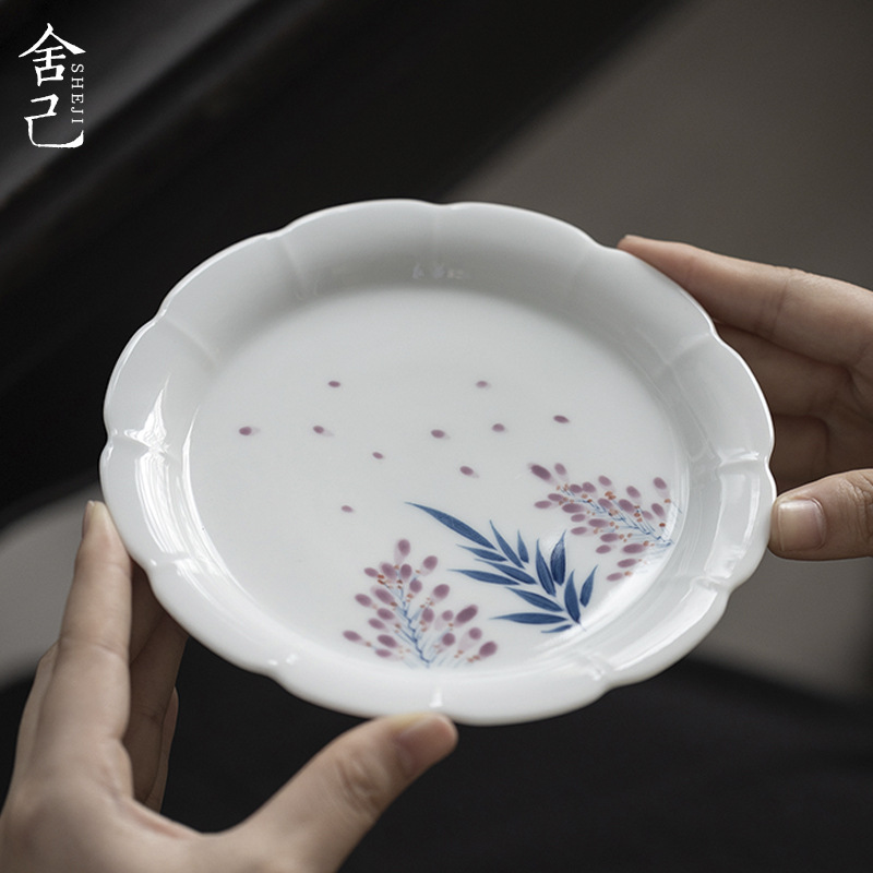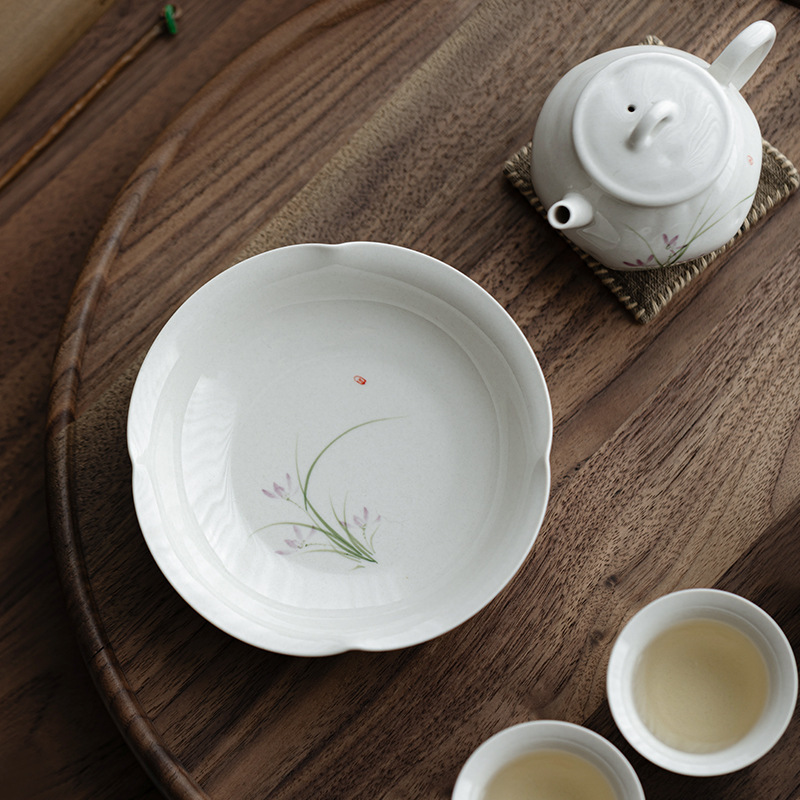 自己を犠牲にし、翡翠泥白磁手描き藤花口ポット、茶道アクセサリー、家庭用ドライポット、茶とフルーツプレート