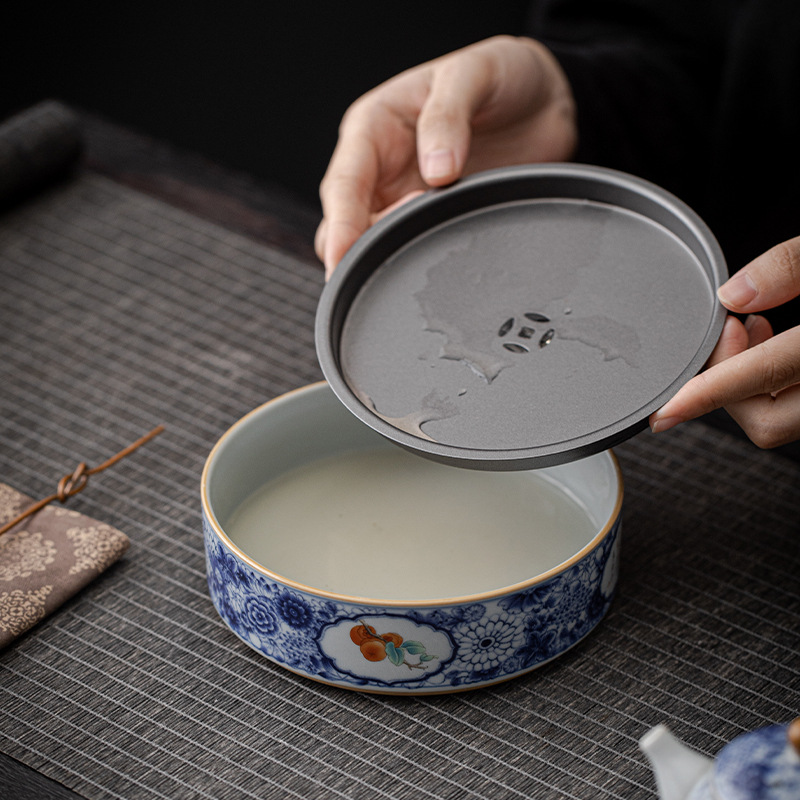 青花開窓陶磁器貯水紫砂壺托茶盤工夫茶器トランペット乾燥泡盤貯水式壺承壺マット