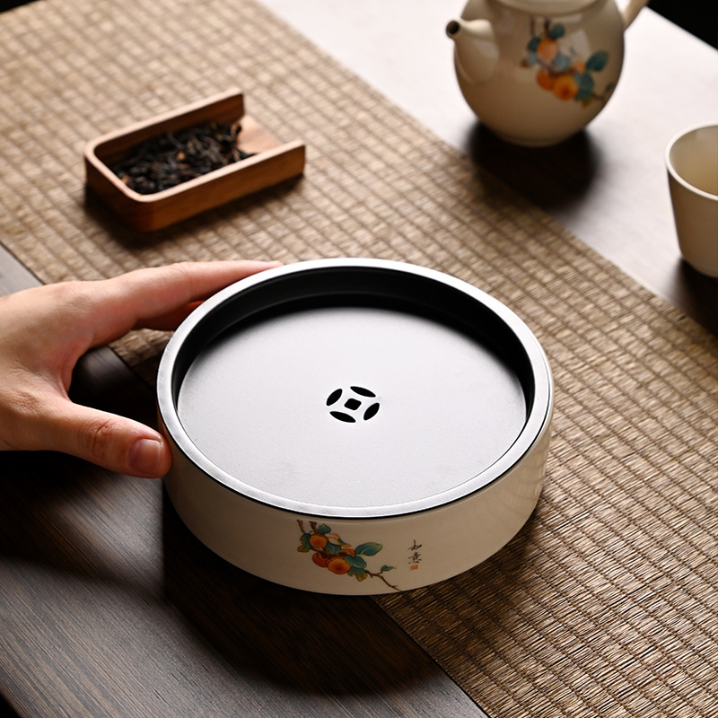 レトロ柴焼手描き壺承スイーツ果盤円形家庭用茶承養壺蓋碗茶壺蓋トレーベース