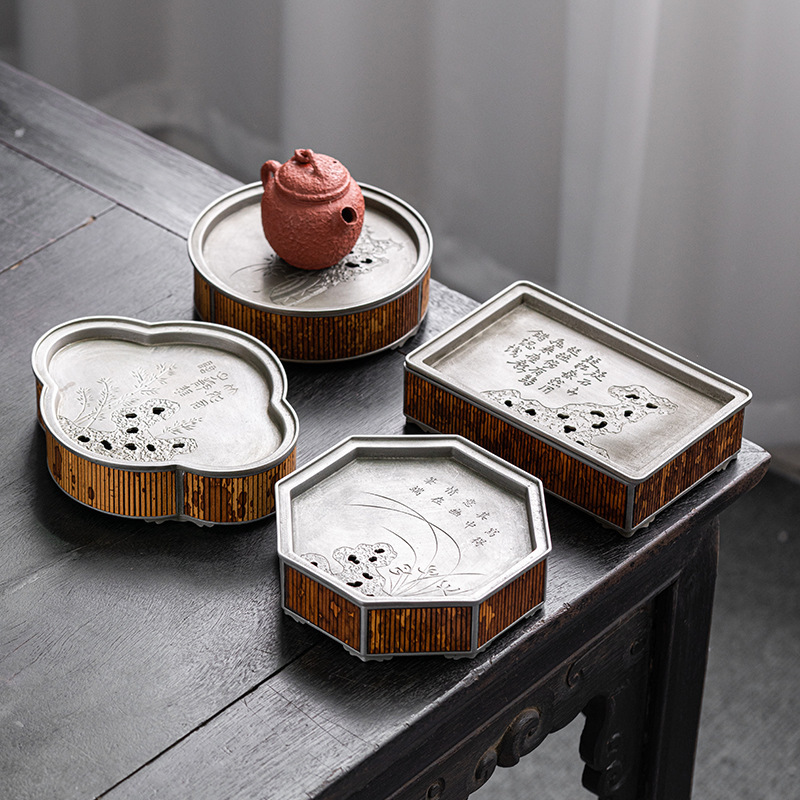 湘妃竹レトロ壺承中国式古錫乾燥泡台手作り貯水茶盤家庭用工夫茶道具茶トレー