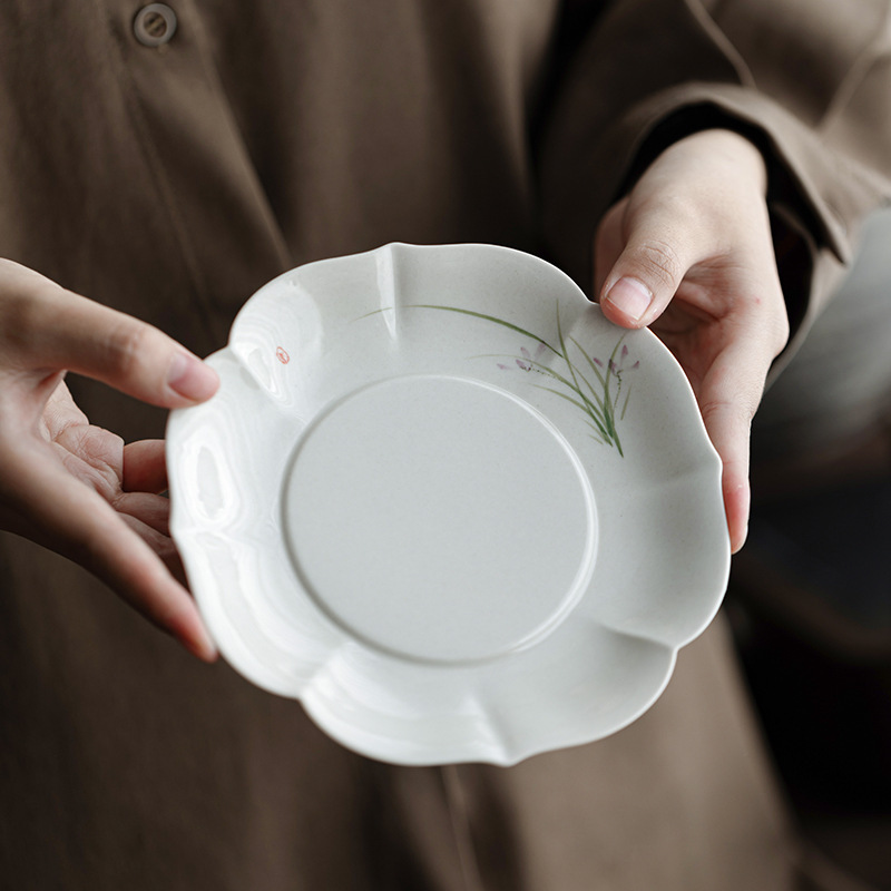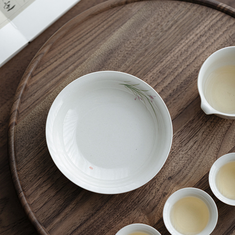 中国式レトロ手描き蘭貯蔵水筒承茶盤陶磁器蓋碗底托養壺乾泡茶台茶器部品
